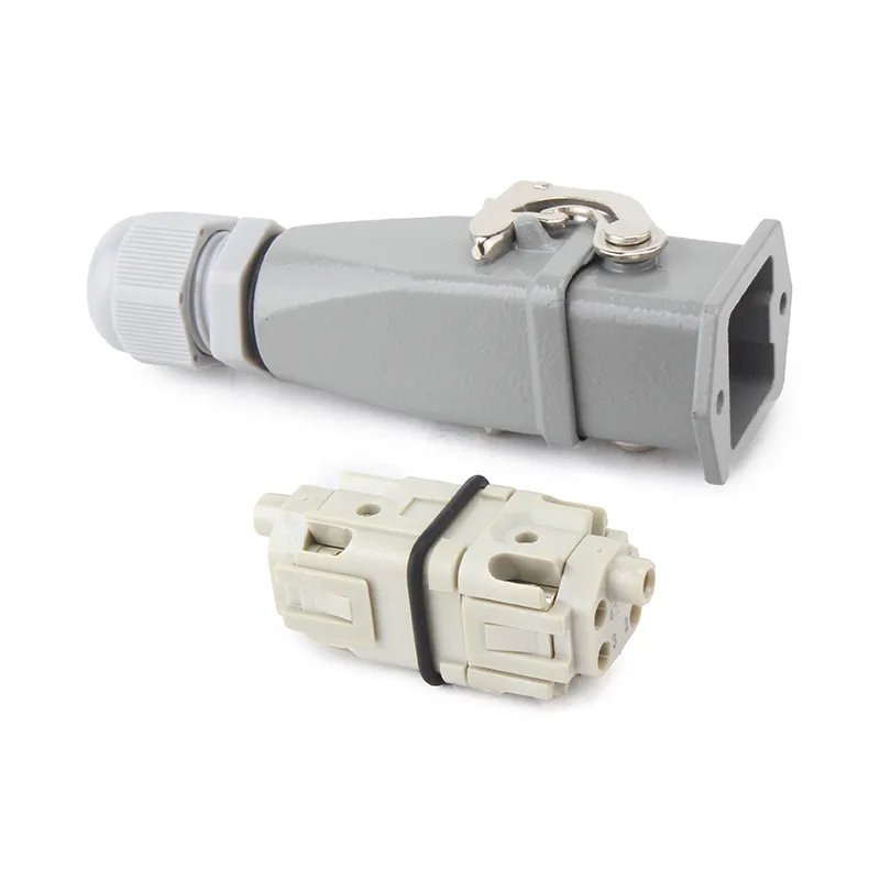 हेवी ड्युटी कनेक्टरहरूको HA दायरा सानो आकारको स्थिति तार जडानको लागि प्रयोग गरिन्छ। त्यहाँ 3 + 1P, 4 + 1P, 10P र 16P तपाईको छनौटको लागि छन्। यसलाई शीर्ष-प्रविष्टि आवास र साइड-प्रविष्टि आवाससँग मिलाउन सकिन्छ।