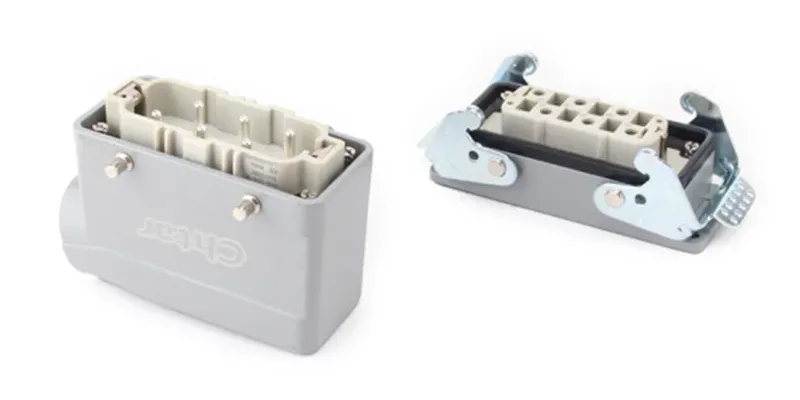 हेभी ड्युटी कनेक्टरहरू हाउजिङ हेभी ड्युटी कनेक्टरहरूबाट भेला हुन्छन् र भारी शुल्क कनेक्टरहरू सम्मिलित हुन्छन्। यी दुई कम्पोनेन्टहरूको भौतिक भिन्नताहरूको कारणले गर्दा, दुई सामग्रीको रंगहरू नजिकको अनुमान प्राप्त गर्न मात्र मिलाउन सकिन्छ। हाउजिङ हेभी ड्युटी कनेक्टरहरू धातुबाट बनेका हुन्छन् र RAL7037 ग्रेमा पावर-कोटेड हुन्छन्, Insert हेभी ड्युटी कनेक्टरहरू PC बाट RAL7032 ग्रेमा बनेका हुन्छन्।