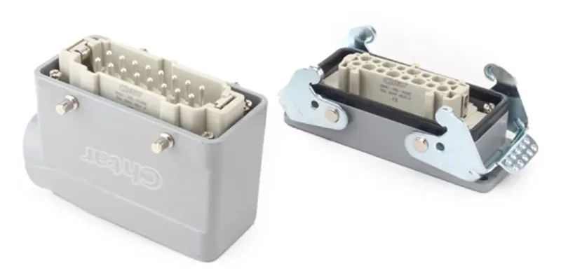 भारी शुल्क कनेक्टरहरू उच्च प्रवेश सुरक्षा मूल्याङ्कन र IP65 हुन्। तिनीहरूले एक हुडमा पावर, सिग्नल, डाटा, वायमेटिक्स र फाइबर अप्टिक्स राख्न सक्छन्। तिनीहरूले स्थापना र मेसिन परिवर्तनको समयमा तारिङको समयलाई नाटकीय रूपमा घटाउँछन्। तिनीहरू सुरक्षित लक, स्पष्ट कोडिङ, र उच्च सम्पर्क प्रविधिहरू विफलताहरू रोक्न हुन्। तिनीहरू समस्या निवारण वा मोड्युल प्रतिस्थापनको लागि द्रुत विच्छेदन सक्षम छन्।