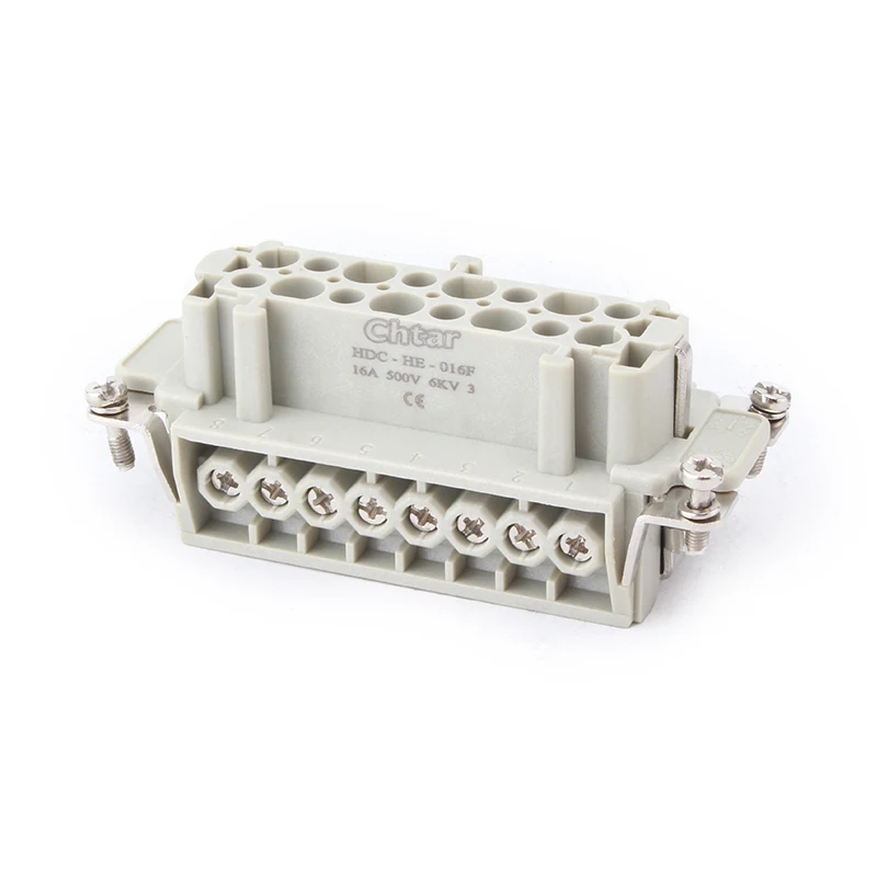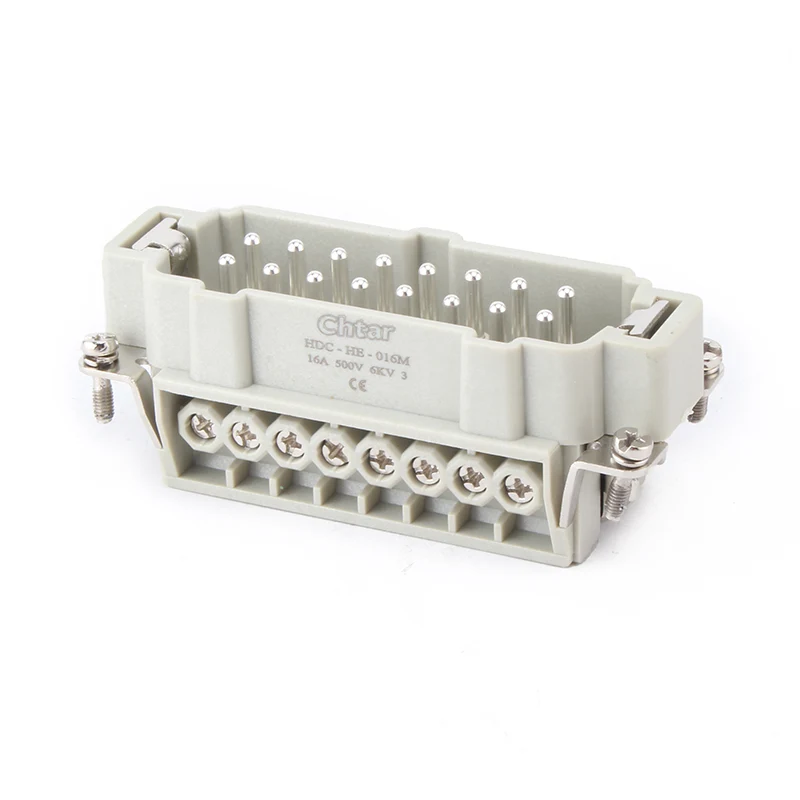 M/F 16 Pin Insert Heavy Duty Connectors भनेको आल्मुनियम हाउसिङ हेभी ड्युटी कनेक्टर HDC-HE-016 मा माउन्ट हुने पार्ट्स हो। भारी शुल्क जडानहरू घुसाउनुहोस् PC र पीतल पिनहरूबाट बनेका छन्। CHTAR काँसाका पिनहरू चाँदीको प्लेटेड हुन्छन्। यो पुरुष र महिला अंगहरू एकसाथ जोडिएको छ। यसलाई IP65 सुरक्षा बनाउनको लागि आवासको भागमा भेला गर्न आवश्यक छ।