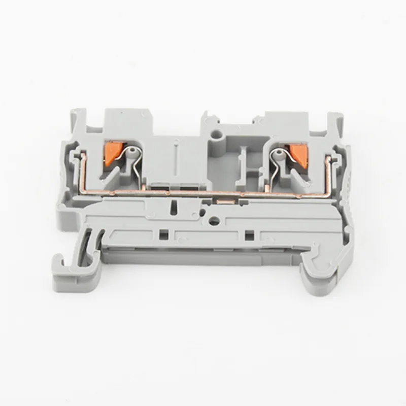 तारहरू सीधा छ: केवल ठोस कन्डक्टरहरू वा ferruled लचिलो तारहरू सीधा घुसाउनुहोस्। वसन्त क्ल्याम्प स्वचालित रूपमा लक हुन्छ - कुनै उपकरण आवश्यक छैन। स्क्रू-प्रकार टर्मिनलहरूको तुलनामा, PT 2.5 फीड थ्रू दिन रेल टर्मिनल ब्लकले स्थापना समय 50% सम्म घटाउन सक्छ, विशेष गरी उच्च-घनत्व प्यानलहरूमा उपयोगी। एकचोटि तपाईंले यो पुश-इन डिजाइन प्रयास गर्नुभएपछि, स्क्रूहरूमा फिर्ता जानु एक कदम पछाडिको जस्तो लाग्छ।